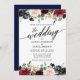 Moderne Élégante calligraphie Bourgogne Marsala Bleu Faire-part de mariage Floral