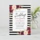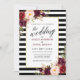 Invitation Calligraphie moderne Bourgogne Mariage floral rayé