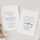 Cette calligraphie moderne et élégante faire-part de mariage avant et arrière est parfaite pour un mariage rustique. Le design sobre et élégant présente une typographie de script classique et sophistiquée en noir et blanc. Enregistrez du papier en incluant plus de détails au verso de l'invitation plutôt que sur une carte de boîtier séparée.