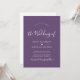 Script De Calligraphie Moderne Minimaliste Cartes De Faire-part de mariage Mauve Violet. Doté d'un élégant script de police de queue d'écharpe en blanc sur mauve, violet poussiéreux ou arrière - plan de couleur lavande. Motif cardiaque entre les noms. L'envers de l'invitation contemporaine consolide tous les "détails mariages" essentiels que l'on retrouve habituellement sur les cartes individuelles dans le paquet mariage. Ce faire-part de mariage tout en un moderne et économique comprend un modèle graphique de code QR au dos, que vous pouvez customiser avec votre propre code (ou retirer si nécessaire). C'est facile à personnaliser. En incorporant un code QR, vous pouvez enregistrer du papier tout en permettant aux invités d'accéder aux détails, RSVP, ou les deux. Créez une ambiance chaleureuse et accueillante pour vos invités à prendre part à la joie de votre journée spéciale. Commandez dès maintenant et assurez-vous que votre célébration mariage est vraiment inoubliable !