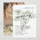 Invitation Calligraphie moderne Photo Sage Vert Floral Mariag