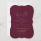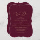Cette délicate calligraphie dorée bordeaux We Do faire-part de mariage est parfaite pour un mariage moderne. Le design minimaliste romantique présente une belle et élégante typographie de champagne jaune doré sur un arrière - plan rouge bordeaux à l'allure simple et épurée.