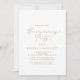 Cette délicate calligraphie dorée invitation à la fête du réchauffeur est parfaite pour un événement moderne. Le design minimaliste romantique présente une belle et élégante typographie de champagne jaune doré sur un arrière - plan blanc au look épuré et simple.