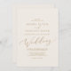 Cette délicate carte de faire-part de mariage de crème de calligraphie or est parfaite pour un mariage moderne. Le design minimaliste romantique présente une belle et élégante typographie de champagne jaune doré sur un arrière - plan de crème d'ivoire au look épuré et sobre.