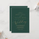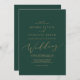 Cette délicate carte faire-part de mariage verte de calligraphie or est parfaite pour un mariage moderne. Le design minimaliste romantique présente une belle et élégante typographie de champagne jaune doré sur un arrière - plan vert émeraude à l'allure simple et épurée.