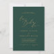 Cette délicate calligraphie dorée verte la boda de faire-part de mariage est parfaite pour un mariage moderne. Le design minimaliste romantique présente une belle et élégante typographie de champagne jaune doré sur un arrière - plan vert émeraude à l'allure simple et épurée.