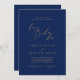 Cette délicate calligraphie dorée marine la boda de faire-part de mariage est parfaite pour un mariage moderne. Le design minimaliste romantique présente une belle et élégante typographie de champagne jaune doré sur un arrière - plan bleu marine au look épuré et simple.