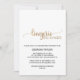 Cette simple carte d'invitation à la lingerie de calligraphie or est parfaite pour une douche nuptiale chic. Le design romantique classique présente une typographie de feuille d'or et un coeur doré. Remarque : Ce design ne comporte pas de véritable feuille d'or. C'est un graphisme de haute qualité fait pour ressembler à du papier doré.