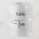 Le numéro de table est écrit avec un élégant script de style écrit à la main. Des lettres noires, un faux arrière - plan argenté avec de la poussière de parties scintillant, brillent.