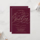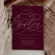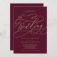 Ce faire-part de mariage romantique de calligraphie bordeaux est parfait pour un simple mariage. Le design classique moderne comprend des tourbillons fantaisistes et des fleurs fantaisistes avec une magnifique typographie de feuille d'or en faux champagne. Remarque : Ce design ne comporte pas de véritable feuille d'or. C'est un graphisme de haute qualité fait pour ressembler à du papier doré.