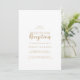Cette invitation seulement pour réception de mariage avec calligraphie simple et dos doré est parfaite pour un événement élégant. Le design classique présente une typographie blanche et dorée rustique avec une touche minimaliste moderne.
