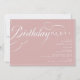 Elégantes invitations de fête d'anniversaire avec "anniversaire" en script de calligraphie blanche sur un arrière - plan rose clair. Jolies invitations d'anniversaire pour tous les âges.
