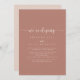 Cette carte de réception calligraphie en terre cuite est parfaite pour une soirée post-elopement rustique. Le design sobre et élégant est caractérisé par une typographie classique et sophistiquée. Les cartes RSVP sont vendues séparément.