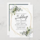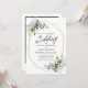 Script de calligraphie moderne Elégante Watercolor Botanical Greenery Card comprend des feuilles d'eucalyptus, feuillage botanique vert, feuilles bleus poussiéreux et d'autres belles verdure botanique. Cadre géométrique or, retour photo