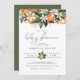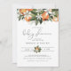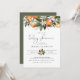 Cette invitation baby shower comporte des fleurs d'orange d'aquarelle et une police de script amusante. Cette invitation est l'ajout parfait à votre petite mignonne neutre sur le chemin de douche.