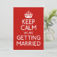 Conserver le calme Nous nous marions - invitations de mariage avec une touche d'humour .. arrière - plan rouge avec un texte blanc et une couronne dans le même style que le garder le calme et continuer le design .. annonces mariages personnalisables de Ricaso