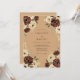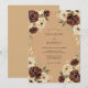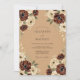 The design showcases a rich camel base paired with dramatic floral illustrations. Deep chocolate anemones and ivory ranunculus are accented by muted sage green leaves. This earthy palette evokes a warm, rustic atmosphere ideal for a harvest-inspired event. The artistic botanical elements create a balanced, natural aesthetic.