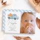 Cette invitation de photo vintage et rustique pour le 1er/premier anniversaire d'un petit garçon "petite citrouille" présente un camion bleu rempli de citrouilles et de fleurs. Le verso présente un fond blanc avec des motifs à carreaux gingham bleus. Personnalisez selon vos besoins. Vous pouvez trouver plus de produits assortis dans ma boutique.