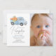 Invitation Camion à citrouilles bleues Gingham Garçon Photo 1