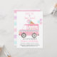 Cette invitation mignonne comprend un camion de crème glacée aquarelle peint à la main avec des friandises glacées et des ballons aux couleurs pastel.