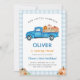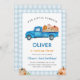 Aquarelle Bleu Camion et Citrouille Automne Ferme Bleu En vichy Invitation Anniversaire