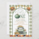 Automne Citrouille Automne 1er Anniversaire Camion Vert En vichy Chaîne Lumière Florale Invitation, Editable Automne Garçon Notre Petit Citrouille Premier Anniversaire invitation, ZB1