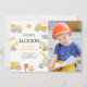 Chariot de construction Anniversaire Fête Photo Invitation. Préparez-vous à vous amuser ! Cette Invitation d’anniversaire de Chariot de construction comporte des camions audacieux, de la saleté et des couleurs vibrantes, parfaits pour le grand jour de votre petit constructeur. Entièrement personnalisable pour les détails de l'âge et de la fête.