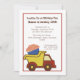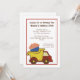 Camion à benne rouge et jaune avec un cupcake. Personnaliser pour l'anniversaire d'un enfant. Modifiez le texte pour répondre à vos besoins.