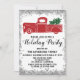 Célébrez la saison des Fêtes avec ce camion rouge festif avec une invitation de fête des arbres de Noël verts. Les détails de la fête sont écrits dans une typographie noir fantaisiste et audacieuse avec une parties scintillant argentée scintille la bordure et un arrière - plan blanc. Cette invitation est parfaite pour des fêtes de vacances, de Noël ou d'hiver !