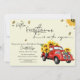 Invitation Camion rouge vintage avec Baby shower tournesol