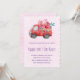 Invitation à une fête de la Saint-Valentin avec un joli camion à l'aquarelle rouge. Transportant des cœurs et des fleurs à l'arrière. Je t'aime, écrit sur le côté. Fantaisiste et adorable.