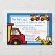 Ce petit garçon n'aime pas les camions à benne et les backhoes. Personnalisez notre Invitation de camions de construction de couleur primaire brillante avec votre propre texte et n'oubliez pas de mettre une photo de votre propre à la place du conducteur.