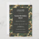 Préparez-vous à une fête d'anniversaire pleine d'action ! Cette invitation audacieuse, robuste et inspirée par l’armée est parfaite pour la personne qui est prête à faire la fête avec style. Doté d'un arrière - plan de camouflage et de polices de style militaire robustes, cet invitation donne le ton d'une mission inoubliable, fêtant à plein régime ! L'invitation demande à vos invités de se joindre à la fête en portant du camouflage, mais cette ligne peut être supprimée si pas nécessaire. Créé par Simply Farmhouse Press.