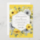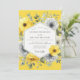 Embrace a modern and vibrant aesthetic for your special day. This elegant design features a beautiful arrangement of painterly anemones in contrasting shades of sunny canary yellow and sophisticated slate grey. Delicate leafy botanicals are scattered throughout, set against a cheerful yellow background. The artistic composition creates a chic and joyous atmosphere for a memorable union.