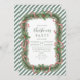 A festive and elegant Christmas card wrapped in watercolor candy canes, holly berries, and evergreen sprigs. The soft green diagonal stripe background adds a modern twist to this classic holiday wreath design — perfect for spreading cozy, cheerful Christmas spirit with timeless charm.