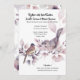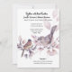 Une belle illustration d'aquarelle montrant deux jolis oiseaux de couleur cannelle avec des rayures et des taches sur leurs ailes sur des branches d'arbustes rose pâle et rose roux remplis de feuilles délicats. Le dos est encadré par une bordure molle et les modèles à l'avant et à l'arrière peuvent être personnalisés pour répondre à vos besoins. N'hésitez pas à les supprimer ou à les déplacer aussi et à modifier la taille et le style des polices si vous préférez. Elles sont idéales pour les petits mariages de jardin familial intime, pour la destination de pays et les fêtes de bois ou pour toute fête d'anniversaire.