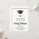 Célébrez la grande réussite de votre diplômé avec cette invitation de fête de remise de diplômes élégante et minimaliste. Avec une classique toque noire de diplômé et un diplôme enroulé avec un ruban rouge, ce design offre un look intemporel adapté aux remises de diplômes de lycée, de collège ou d'université. Le fond blanc épuré est encadré par une bordure dorée sophistiquée, ce qui fait ressortir les détails de votre événement. Ce modèle entièrement éditable vous permet de personnaliser facilement le nom, l'école, la date, l'heure et le lieu pour adapter votre célébration.