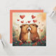 Illustration émouvante avec deux adorables capybaras tenant des pattes dans un pré vibrant de fleurs colorées. Les coeurs rouges flottent au-dessus d'eux, symbolisant leur amour et leur connexion. Les lumières tamisées et les tons chauds évoquent des sentiments de romantisme et de joie, parfaits pour la Saint-Valentin ou le contenu sur le thème de l'amour.