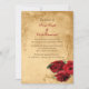 Elégant design vintage caramel brun faire-part de mariage avec des rouleaux décoratifs d'angle sur le dessus et le bas avec une photo de trois roses rouges dans le coin inférieur. On donne à l'arrière - plan une application de grunge texturée pour un look de papier ancien. Ce design est offert en plusieurs arrière - plans prêts à l'emploi. Ce design est également offert sur de nombreux autres produits de papeterie pour répondre à tous vos besoins en mariage.