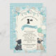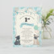 Carlin chien chiot invitation à la fête d'anniversaire sur le thème pastel aqua bleu couleur et salle pour 2 photos sur le dos.