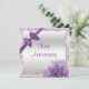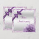 Magnifique invitation élégante et sophistiquée pour le 1er anniversaire de mariage pour les couples. Il s'agit d'un joli design avec une charmante œillet de couleur lilas dans le coin inférieur droit et un nœud en soie violette dans le coin supérieur gauche imprimé sur un fond dégradé argenté avec un cadre de bordure brillant lilas et argent, derrière se trouve une autre bordure d'un joli dégradé lilas recouvert d'un beau motif damassé argenté de volutes et de fioritures. L'œillet représente la fleur traditionnelle pour les 1ers anniversaires de mariage. Il s'agit d'un design floral classe et moderne pour votre premier anniversaire de mariage. Personnalisez ce modèle avec le texte de votre choix pour votre événement en ajoutant vos détails d'événement, style de police, taille et couleur de police, et texte. Si vous souhaitez de l'aide pour personnaliser votre produit, veuillez me contacter via ma boutique et je