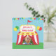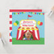 Les enfants seront ravis de recevoir cette invitation de fête d'anniversaire lumineuse et joyeuse qui a une tente carnavalesque rouge et blanc avec beaucoup de drapeaux de bottes colorés et des ballons accrochés autour. La tente est équipée d'un panneau avec des étoiles pour mettre en vedette le nom de l'enfant d'anniversaire et un coup d'oeil dans la tente avec espace pour la personnalisation de la photo de l'enfant d'anniversaire ! Pour déplacer ou redimensionner une photo, passez en mode personnalisation. Parfait pour les garçons et les filles d'anniversaire. C'est également parfait pour les écoles qui organisent un carnaval d'école. Personnalisez facilement avec les détails de votre fête sur la page arrière de l'invitation qui a un arrière - plan motif à rayures rouges et blanches pour correspondre à la tente carnavalesque.
