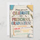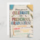 Cette invitation à l'obtention d'un diplôme préscolaire est un choix clair pour ceux qui veulent une célébration amusante et adaptée à l'âge. Le design se concentre sur les éléments dessinés à la main, les couleurs pastel et les détails de carnet/note collante, créant un look ludique et engageant. L'invitation est impressionnante avec son mélange harmonieux de couleurs, d'images et de mise en page. C'est le début parfait pour un diplôme préscolaire mémorable.