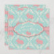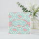 Copie d'Aqua, de rose, et blanche de damassé avec les lapins de Pâques de point de polka et l'invitation doux de chasse à Pâques d'équilibre de contrôle de l'étiquette 3D-look et du guingan.