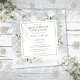 Présentant de délicates feuilles de verdure à l'aquarelle sur un fond de flocons de neige hivernaux, cette invitation chic de déjeuner de demoiselles d'honneur peut être personnalisée avec les informations de votre événement de célébration spécial. Conçu par Thisisnotme©