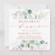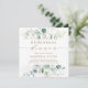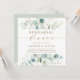 Cette invitation de dîner de répétition présente de l'eucalyptus aquarelle peint, des feuilles de gui botanique vert et or pailleté avec un script or.