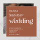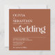 Design minimaliste moderne avec photo carré et typographie branchée sur arrière - plan orange brûlé en terre cuite. Le texte et la photo peuvent être facilement personnalisées pour un design unique d'un genre pour votre journée spéciale.