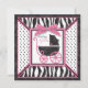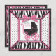 Impression de style boutique zèbre, damas, et points avec accents roses chauds et chariot bébé.