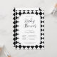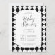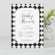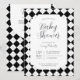 Invitation classique et intemporelle pour une fête de bébé en noir et blanc à motif argyle. Styles de police et disposition personnalisables, avec un fond simple à motif et des formes géométriques carrées épurées. Parfait pour les invitations de fête de bébé unisexe, les invitations de fête de bébé garçon et les invitations de fête de bébé preppy.