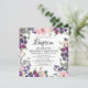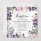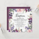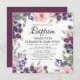De grandes roses roses roses rousses et de petites fleurs de prune et de violet créent une belle bordure florale sur cette invitation carré du baptême. Beaucoup de verdure et de feuille lui donnent une ambiance Boho Chic très moderne. Le baptême est écrit dans un joli script. Le nom du bébé est dans toutes les lettres majuscules dans une police classique. Les détails du baptême suivent. Modèle facile à customiser.